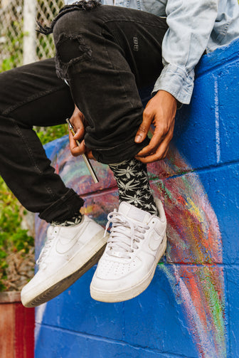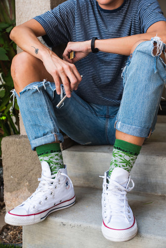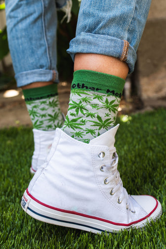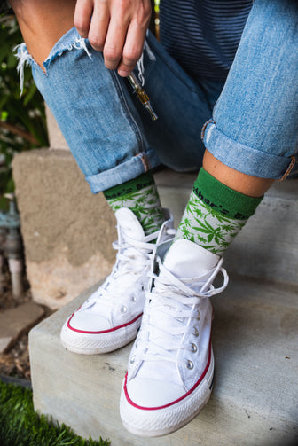 Show off your love for cannabis with these trendy cannabis leaf socks. Pair these breathable socks with your favorite shoes or shorts. Whether they are keeping you warm in the winter or enhancing your outfit in the spring and summer, they are worth adding to your wardrobe! Our socks are the perfect blend of polyester, spandex, nylon and elastic. They are funky, but in the best way!